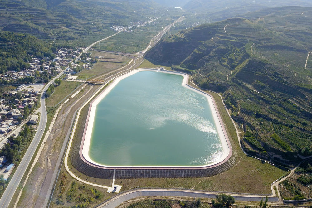 ??這是2021年9月8日在甘肅省天水市拍攝的引洮供水工程楊家灣調(diào)蓄水池(無人機照片)。新華社記者 范培珅 攝