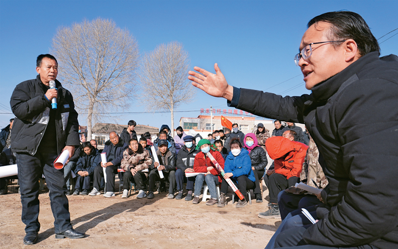 基層民主是全過程人民民主的重要體現(xiàn)。圖為2024年1月17日,在甘肅省臨夏州積石山縣石塬鎮(zhèn)宋家溝村災后重建協(xié)商會上,鄉(xiāng)鎮(zhèn)干部、村干部與村民共同商議災后重建相關(guān)事宜。
