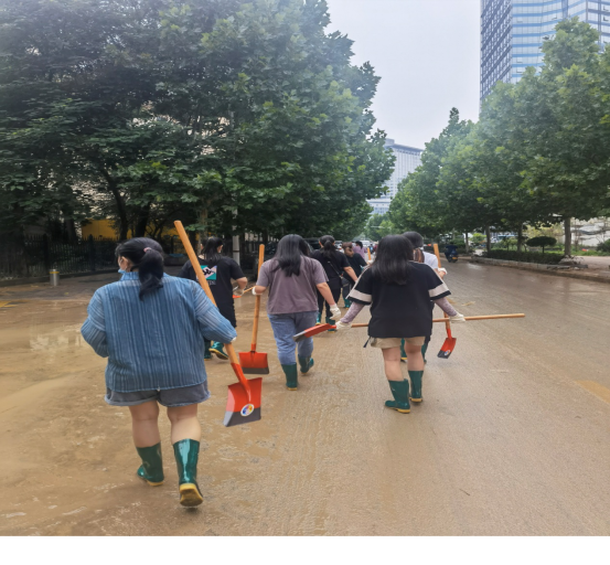 7月22日,市內(nèi)大雨雖過,洪水漸消,但抗災(zāi)救災(zāi)形勢依然嚴(yán)峻,為了幫助人民群眾迅速恢復(fù)生產(chǎn)生活,中共河南省工程咨詢中心黨委對中心青年、尤其是青年黨員發(fā)出了倡議書,第十黨支部收到倡議書后,迅速與幫扶社區(qū)取得聯(lián)系,在了解到社區(qū)急需人員、工具清理道路淤泥后,支部黨員及豫信公司員工紛紛“請戰(zhàn)”,踴躍報名參加防汛志愿服務(wù)活動,并于23日上午9點(diǎn)集合31人,攜帶公司自購清於工具,積極投入到災(zāi)后道路清理工作中。